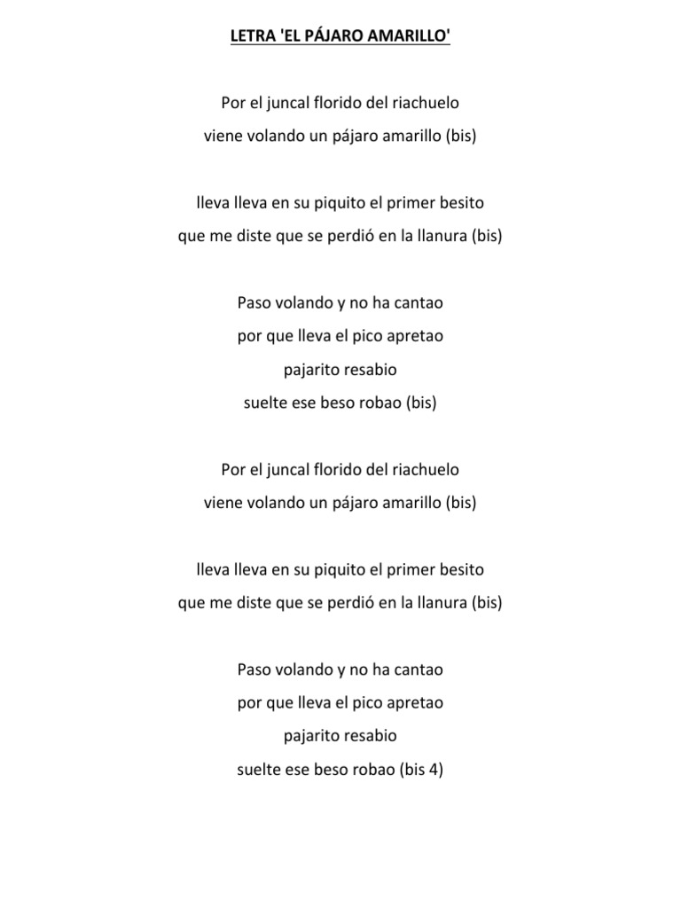 [30+] Letra De La Cancion Pajaro Amarillo