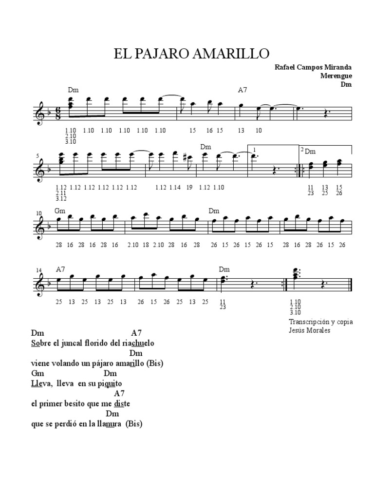 El Pajaro Amarillo Acordes Y Letra Para Guitarra Ukulele Bajo Y Piano